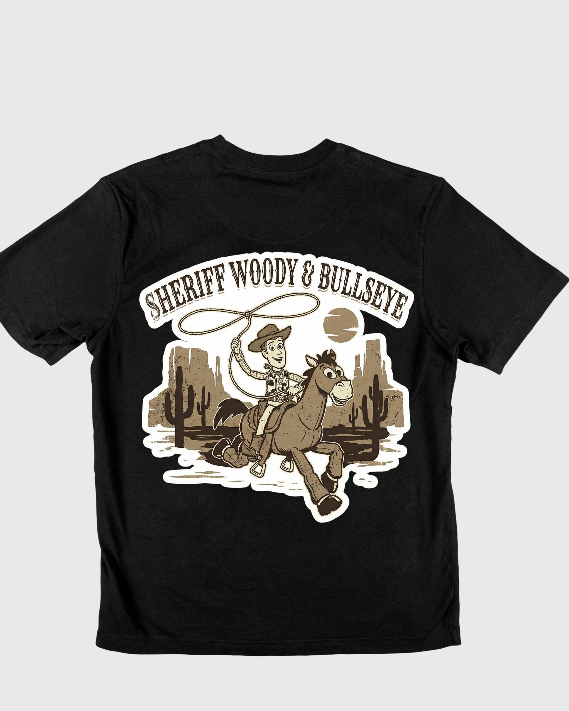 Saddle up for style with this vintage-inspired Sheriff Woody t-shirt! Featuring a classic wild west design with everyone's favorite cowboy and his trusty horse, this tee brings a perfect mix of nostalgia and modern streetwear vibes. Whether you are a fan of the classics or just love unique graphic tees, this is a must-have for your wardrobe.